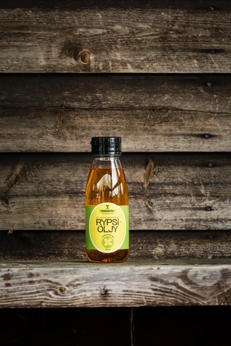 Hailuodon yöttömässä yössä kasva¬neesta rypsistä valmistettu rypsiöljymme on luonnollinen ja terveellinen valinta. Kylmäpuristus säilyttää rypsin arvokkaat ravintoaineet ja aidon luotolaisen maun. Korkealaatuisen kylmäpuristetun rypsiöljymme tunnusmerkit ovat pehmeä pähkinäinen maku, kauniin kullankeltainen väri ja täyteläinen rakenne. Pähkinäinen maku tulee rypsin omasta mausta. Toisin sanoin, rypsin oma maku muistuttaa hieman pähkinää tai mantelia. Öljy on sellaisenaan ihanaa lähes minkä tahansa ruuan tai salaatin päälle.Itse käytämme rypsiöljyä myös burgerikeikoillamme maalaisranskalaisten paistoon, joihon se antaa uniikin maun. Kylmäpuristettu rypsiöljy on hyvä lisä myös täydentämään välttämättömien rasvahappojen saantia. Rypsiöljy on ravitsemuksellisesti merkittävä E- ja K-vitamiinin sekä välttämättömien rasvahappojen lähde. Suomalaisten ravitsemussuositusten (Ruokavirasto) mukaan, terveyttä edistävä ruokavalio sisältää kasviöljyä ja kasviöljypohjaisia levitteitä. Rypsiöljy on erityisen suositeltavaa, sillä se sisältää n-3-rasvahappoja, joiden saanti on Suomessa usein suositeltua vähäisempää.